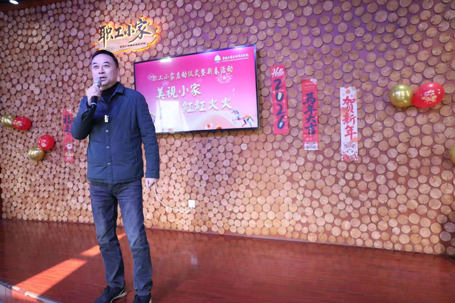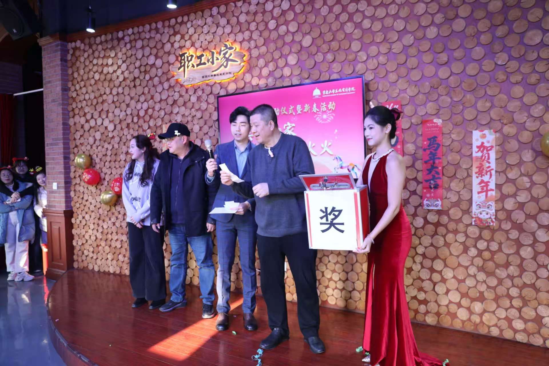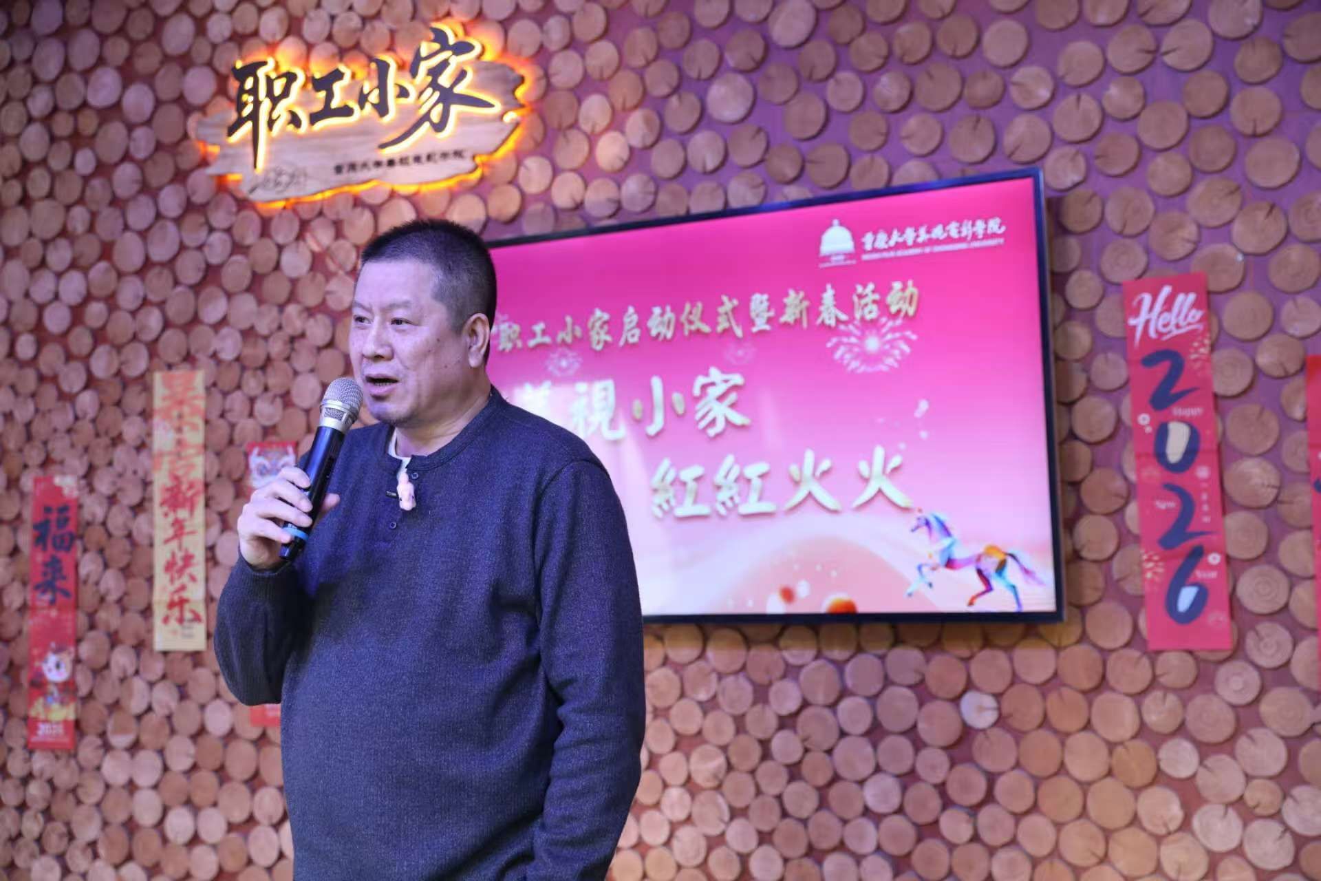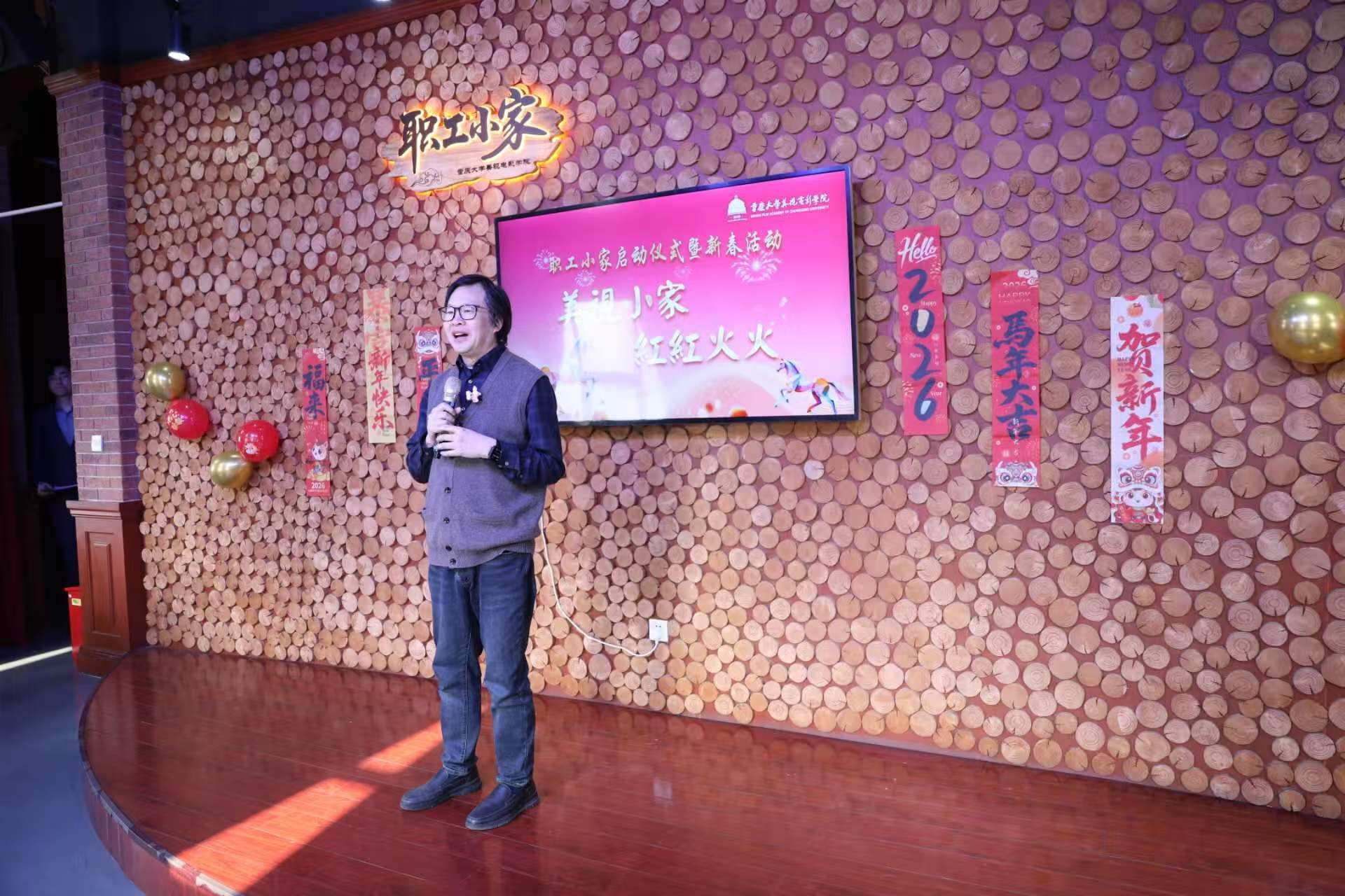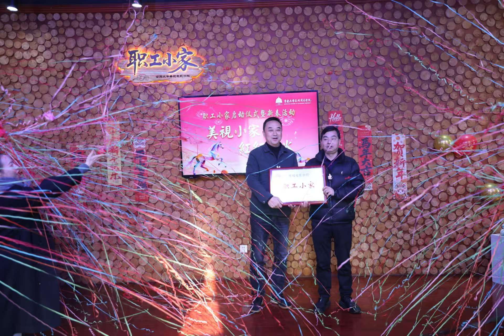 1月15日下午,美视电影学院以“温馨小家启新岁·同心筑梦美视情”为主题,圆满举办“职工小家”启动仪式暨迎新春活动。重庆大学工会副主席陈泽晖、学院理事会副理事长陈松、学院党委书记李阳模、院长范蓓,党委副书记、纪委书记赵华,副院长马欣、黄鹏,分工会主席王希及学院教职工齐聚一堂,共话温情、共迎新春。活动由学院2024级广播电视专业研究生潘烁丞与2023级播音与主持艺术专业本科生李湘祺主持,氛围热烈而温馨。