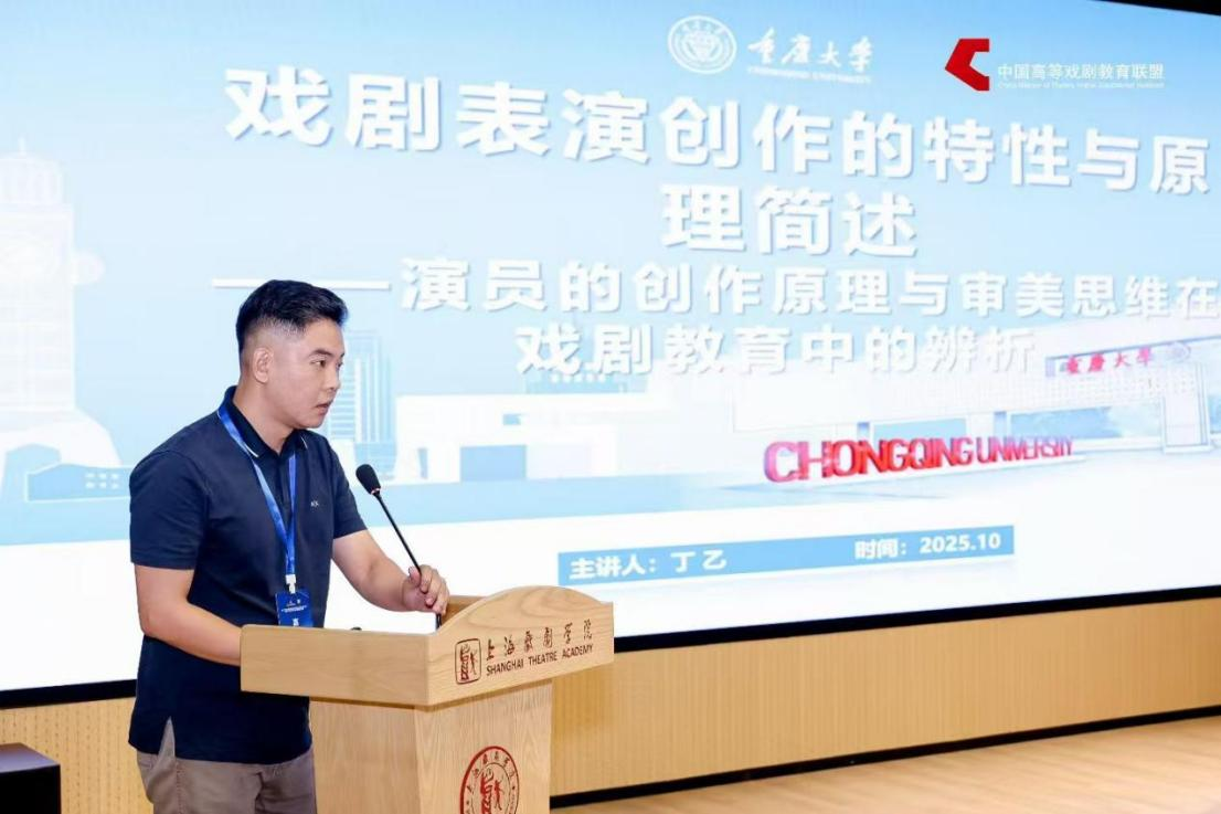 2025年10月1618日,第十二届中国高等戏剧教育联盟交流活动暨第六届大学生戏剧展演活动在上海戏剧学院举行。来自全国30余所高校的领导、专家学者及师生代表共同出席。重庆大学作为联盟第29位会员单位,我院表演系王希主任副教授、赵虎副教授、丁乙副教授、陈建州博士应邀参加此次联盟盛会。