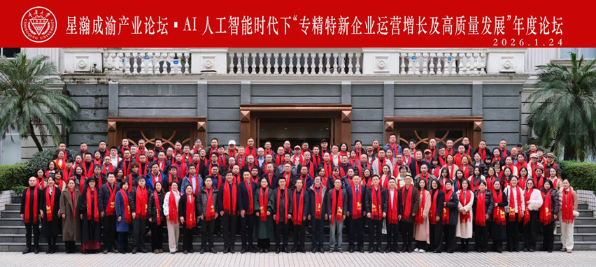 聚漫天繁星,汇浩瀚长河。2026年1月24日下午,星瀚成渝产业论坛·AI人工智能时代下"专精特新企业运营增长及高质量发展"年度论坛在重庆大学美视电影学院成功举办。本次论坛汇聚了成渝两地行业协会及200余家专精特新企业代表,围绕AI赋能、产业升级、企业增长等核心议题展开深度交流,并举行了西部(重庆)专精特新产业联盟揭牌仪式。