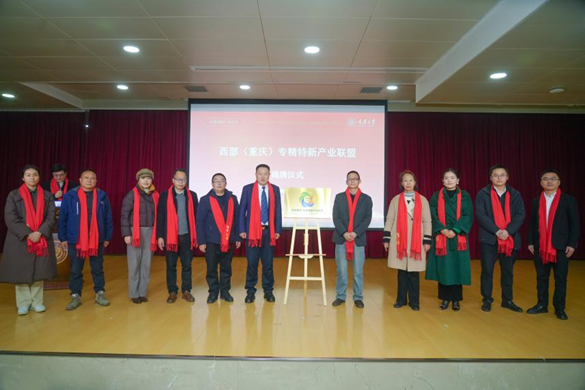 西部专精特新产业联盟秘书长阳晓兵与西部(重庆)专精特新产业联盟理事长、科技领军专精特新企业先进技术研究院院长冉洪斌在开幕仪式上为西部(重庆)专精特新产业联盟揭牌。该联盟联动四川、重庆、陕西共同发起,将为成渝地区“专精特新”企业搭建起资源共享、协同发展的重要平台,助力重庆大学的科技创新发展和区域产业集群升级。