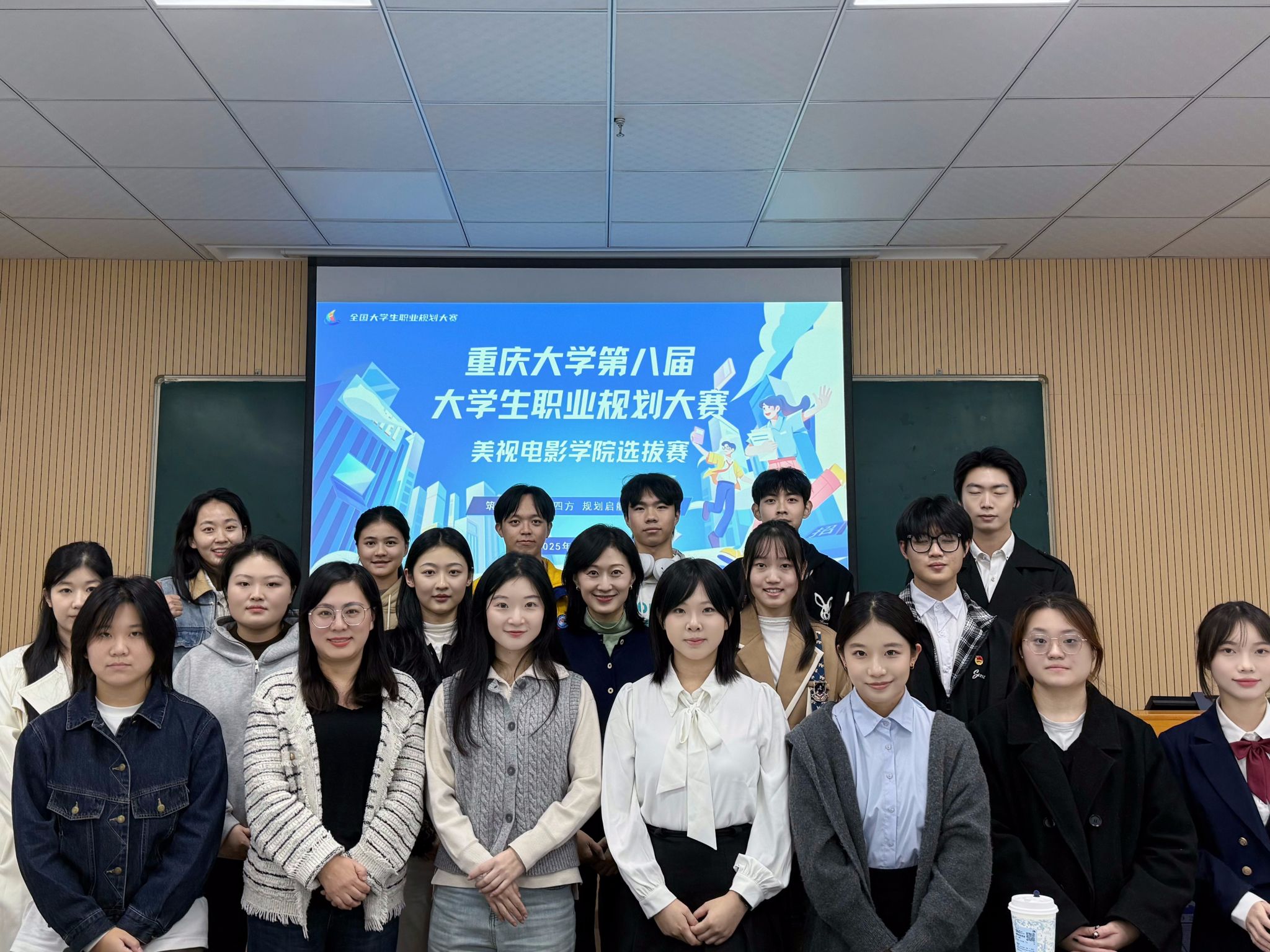 为引导学生树立正确的成长成才观,科学合理规划学业与职业发展,切实提升就业竞争力,美视电影学院于2025年11月13日下午在503教室举行重庆大学第八届大学生职业规划大赛院级选拔赛。本次比赛特别邀请到教育部重庆大学生涯发展咨询工作室负责人陈兰,大学生职业生涯规划课程组老师、博雅学院党委副书记姜雪峰,以及学院各年级辅导员担任本次比赛的评委。