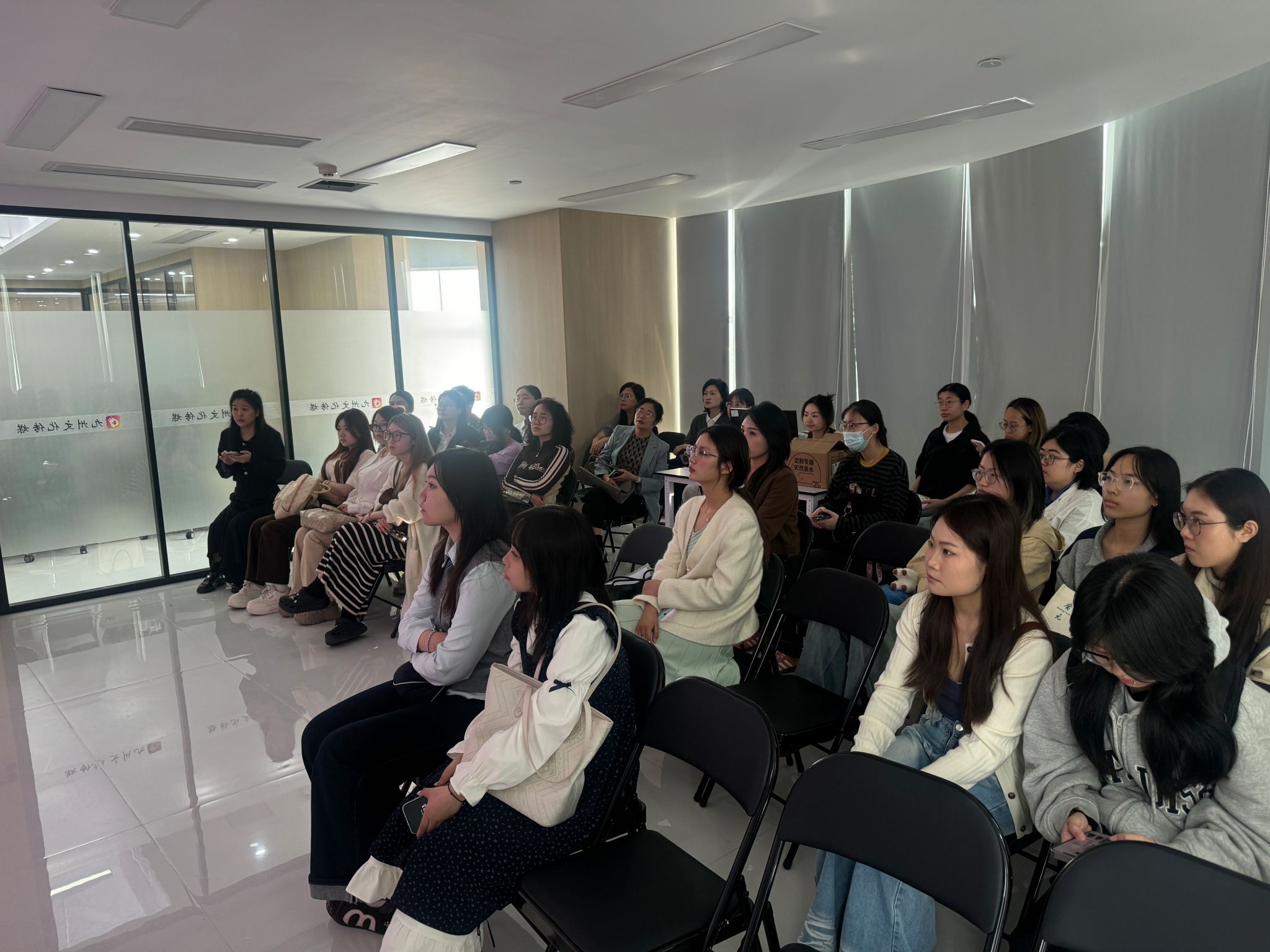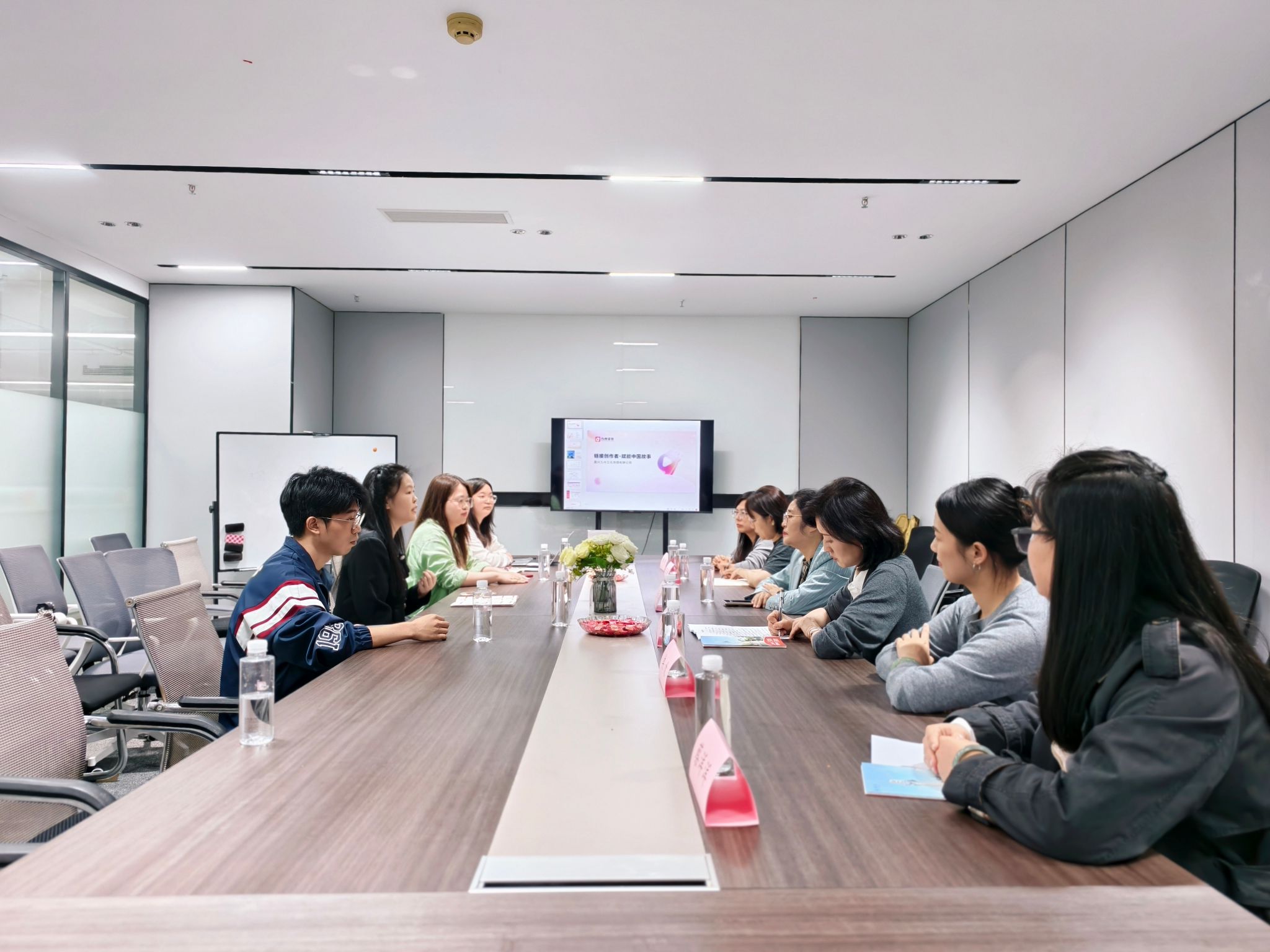 走访期间,在九州文化传媒有限公司相关负责人的带领下,师生们先后参观了公司的海外短剧制作中心、版权运营部、内容策划部等核心部门,近距离了解微短剧从选题策划、剧本创作、拍摄制作到全球发行的全流程运作模式。